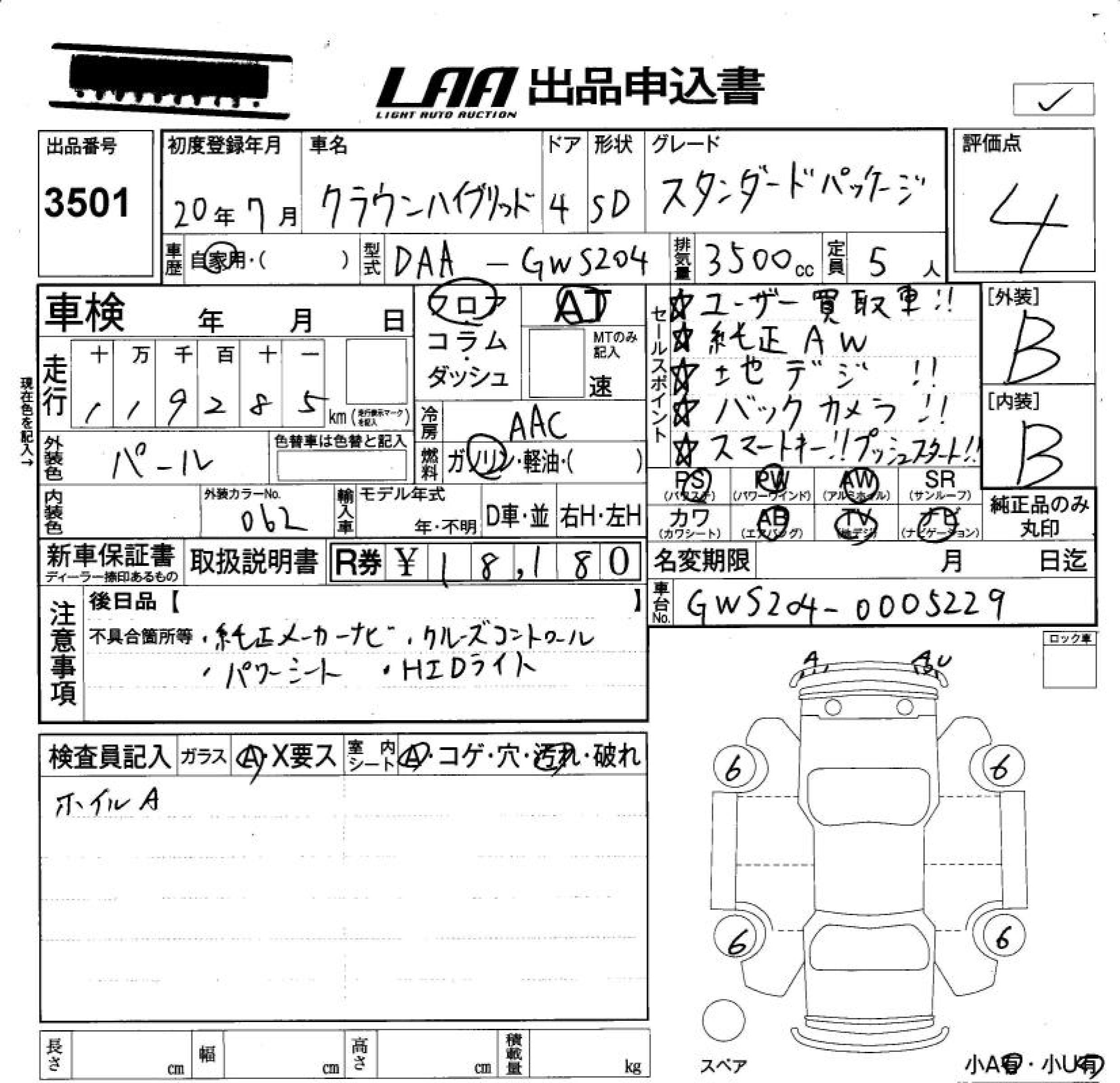 TOYOTA CROWN HYBRID HYBRID STANDARD PA - лот 3501