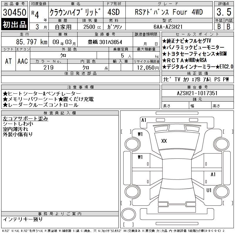 TOYOTA CROWN HYBRID RS ADVANCE FOUR 4WD - лот 30450