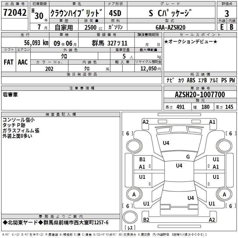 TOYOTA CROWN HYBRID S C PACKAGE - лот 72042