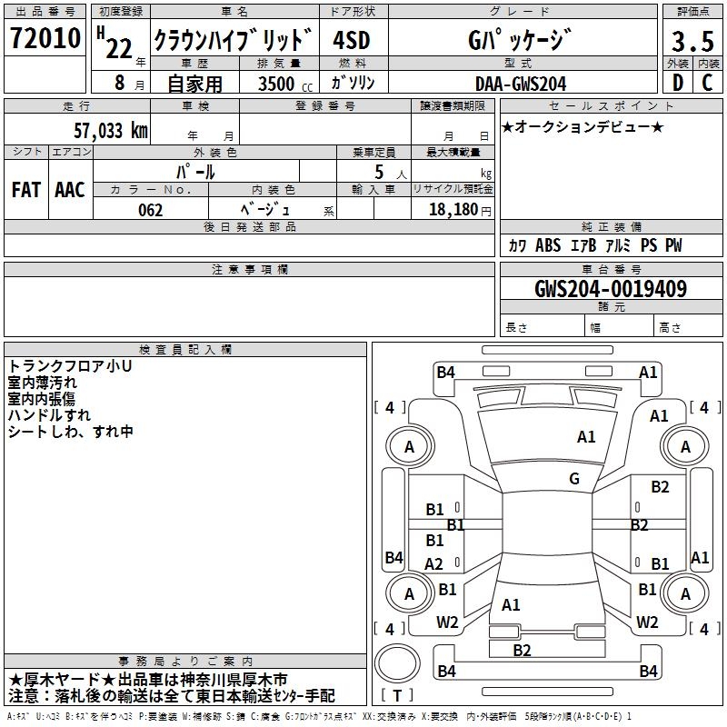 TOYOTA CROWN HYBRID G PACKAGE - лот 72010