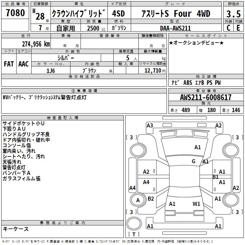 TOYOTA CROWN HYBRID ATHLETE S FOUR 4WD - лот 7080