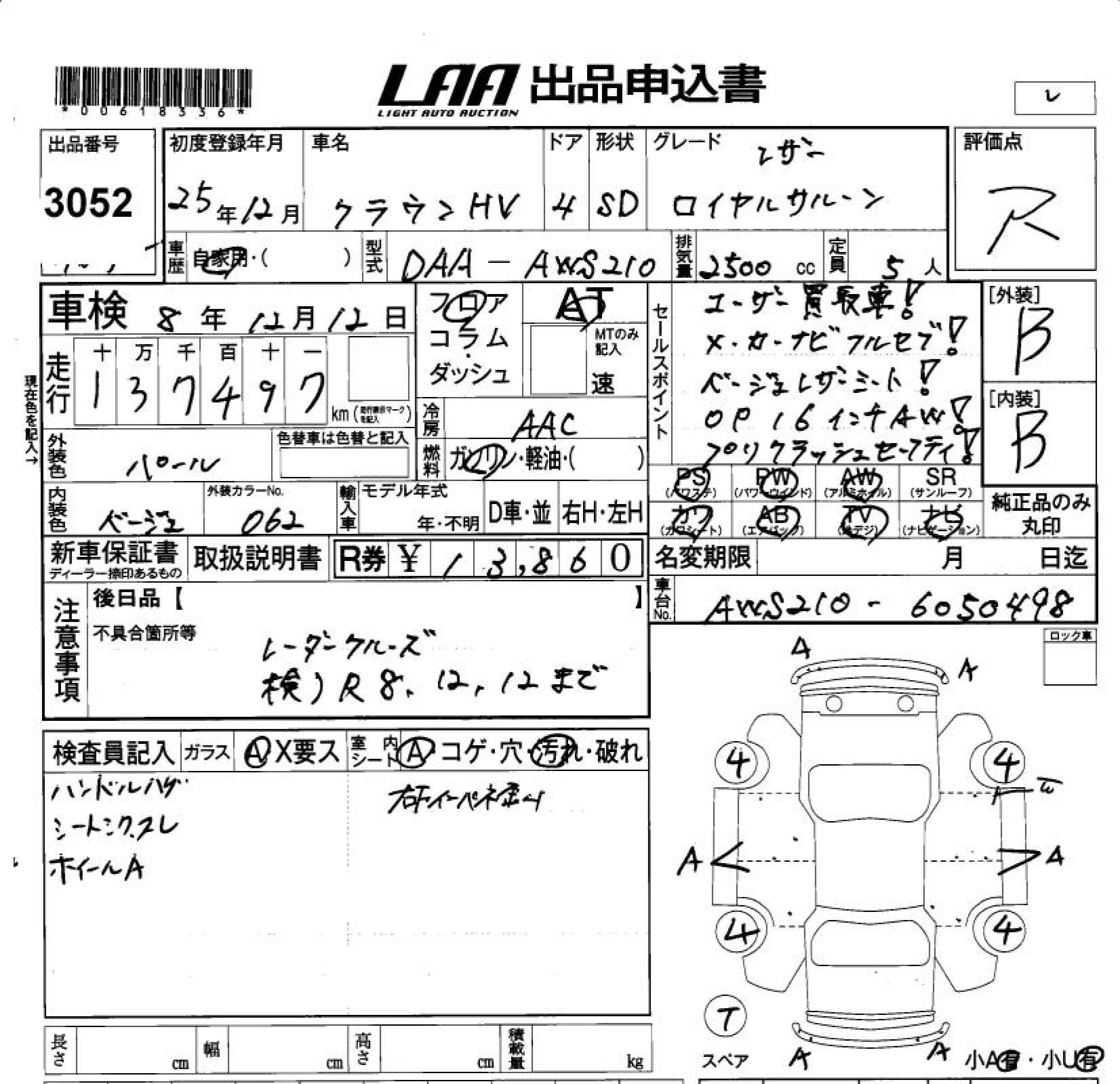 TOYOTA CROWN HYBRID ROYAL SALOON LEATHER - лот 3052