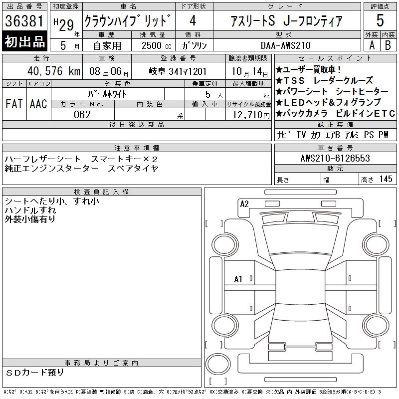 TOYOTA CROWN HYBRID ATHLETE S J- FRONTIER - лот 36381