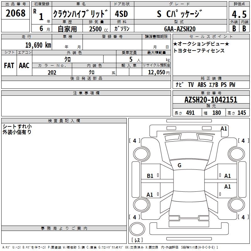 TOYOTA CROWN HYBRID S C PACKAGE - лот 2068