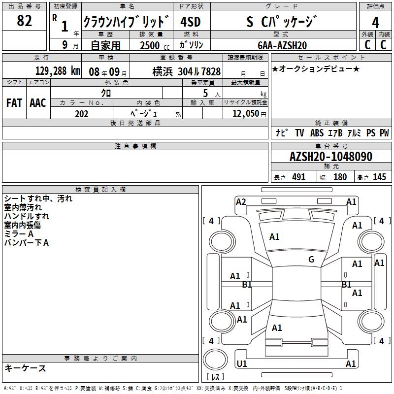 TOYOTA CROWN HYBRID S C PACKAGE - лот 82
