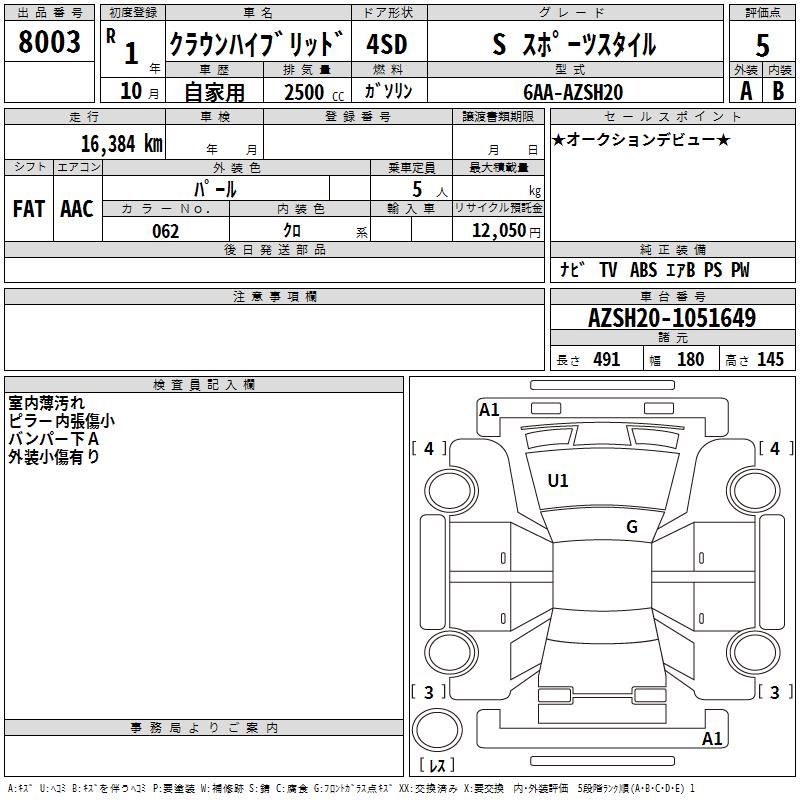TOYOTA CROWN HYBRID S SPORT STYLE - лот 8003