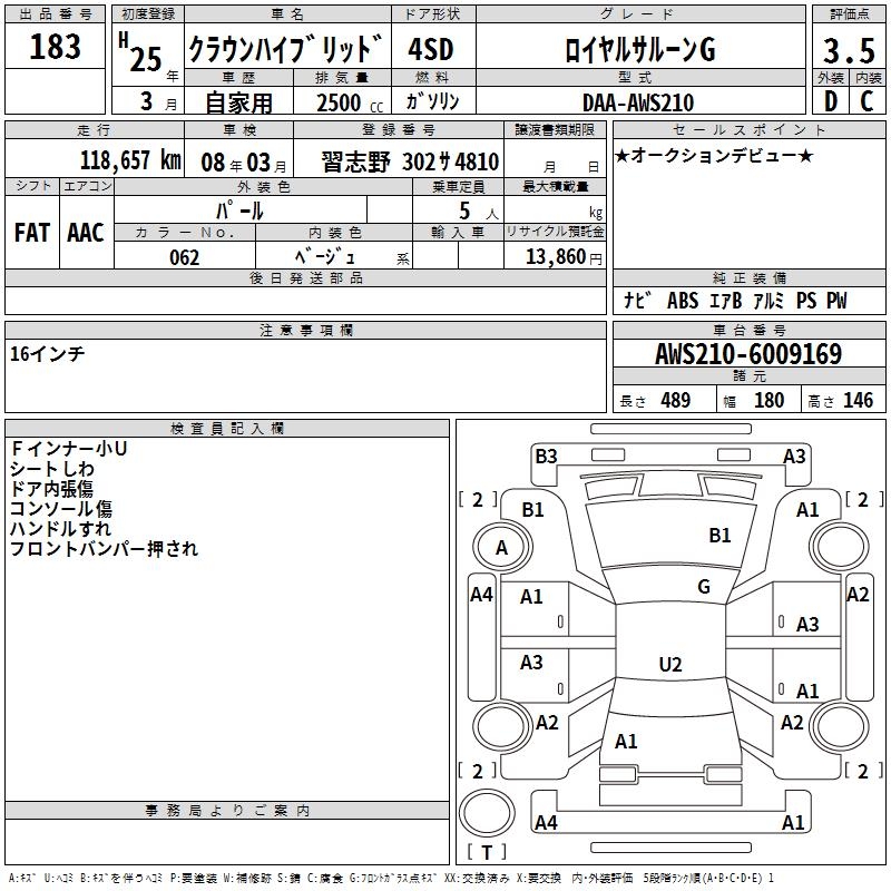 TOYOTA CROWN HYBRID ROYAL SALOON G - лот 183