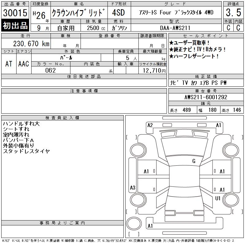 TOYOTA CROWN HYBRID ATHLETE S FOUR BLACK 4WD - лот 30015