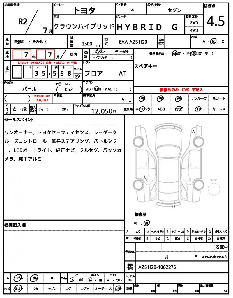 TOYOTA CROWN HYBRID - лот 54549