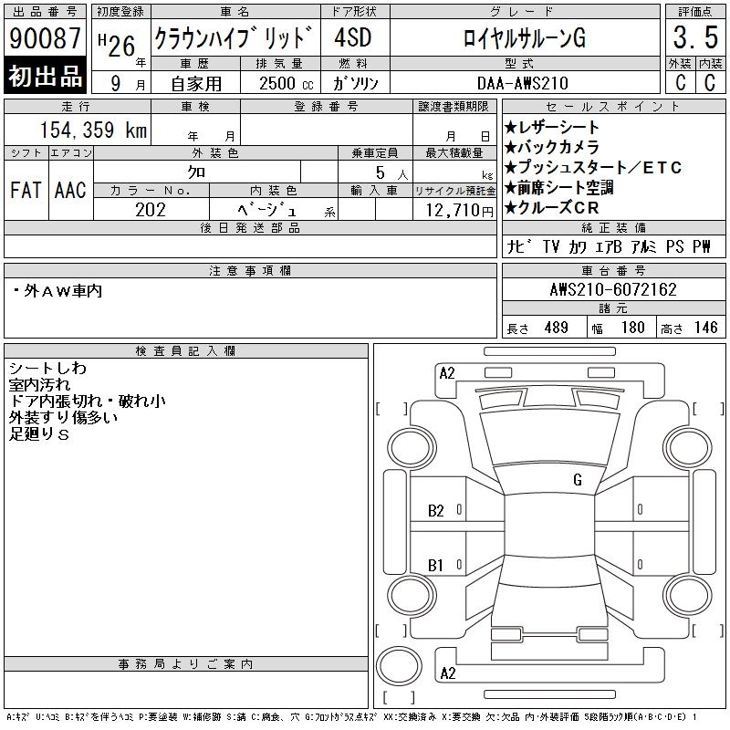 TOYOTA CROWN HYBRID ROYAL SALOON G - лот 90087