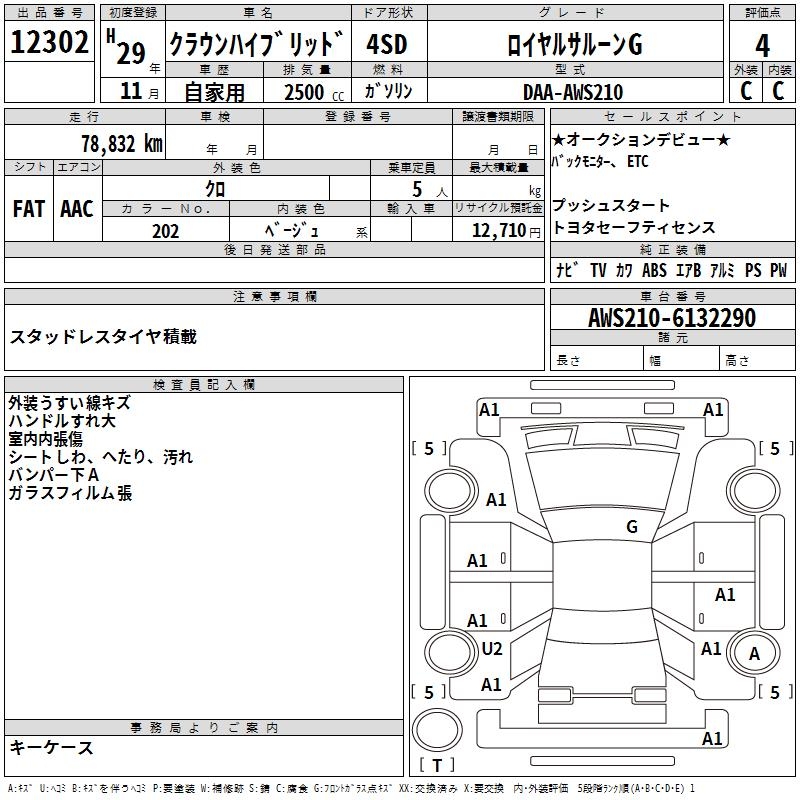 TOYOTA CROWN HYBRID ROYAL SALOON G - лот 12302