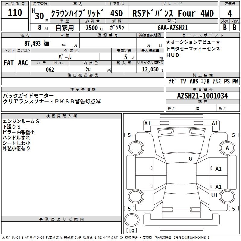TOYOTA CROWN HYBRID RS ADVANCE FOUR 4WD - лот 110