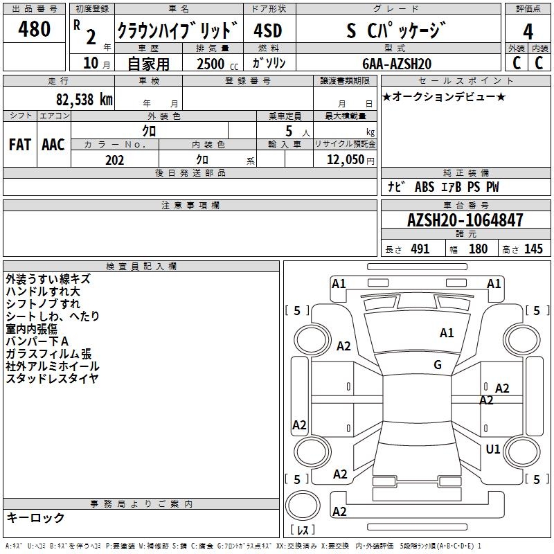 TOYOTA CROWN HYBRID S C PACKAGE - лот 480