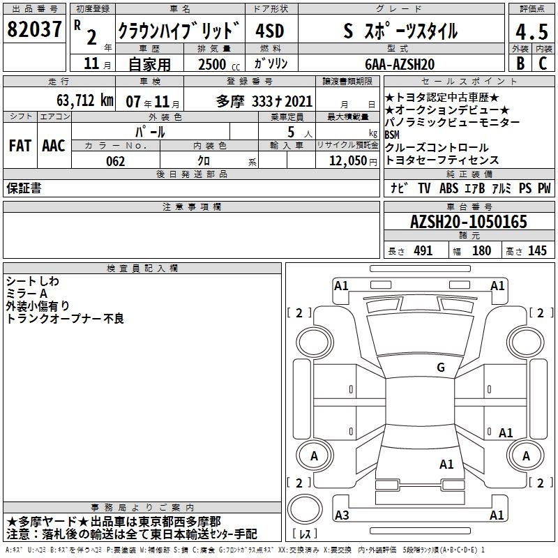 TOYOTA CROWN HYBRID S SPORT STYLE - лот 82037