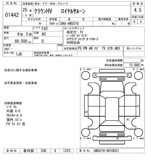 TOYOTA CROWN HYBRID ROYAL SALOON - лот 1442