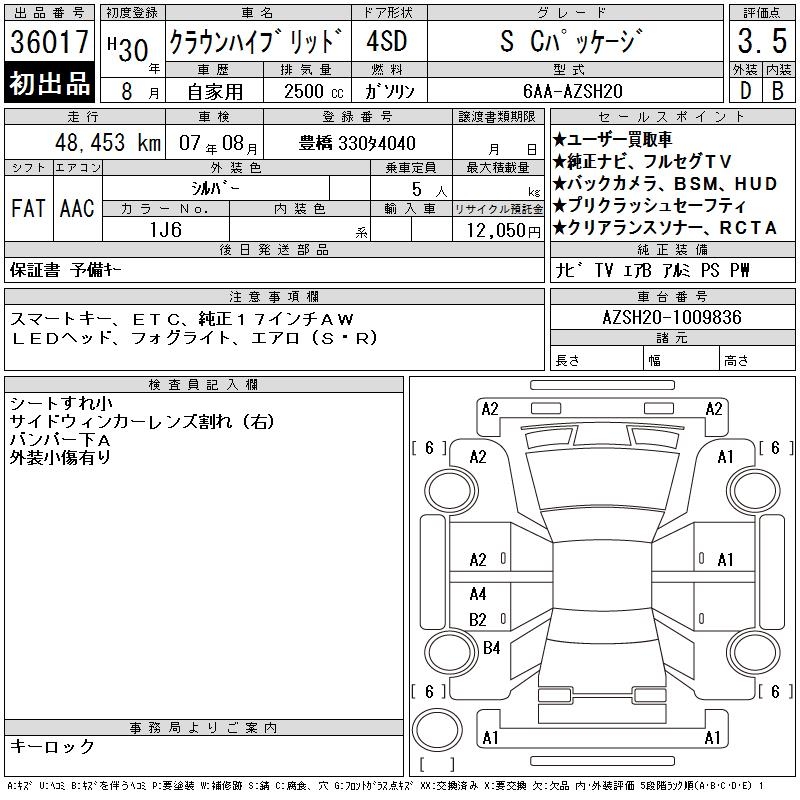 TOYOTA CROWN HYBRID S C PACKAGE - лот 36017