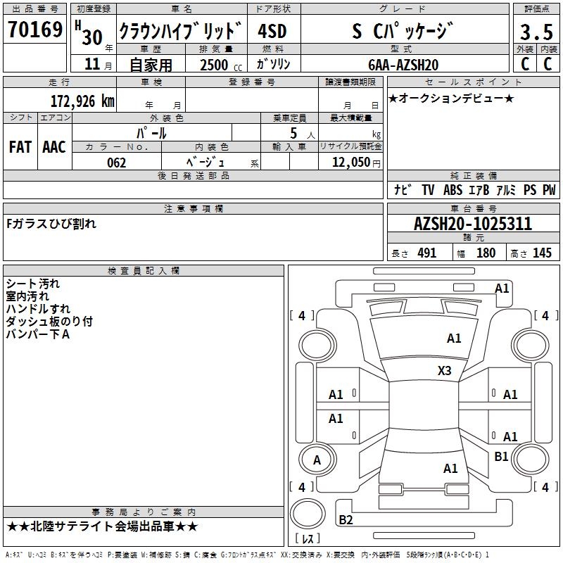 TOYOTA CROWN HYBRID S C PACKAGE - лот 70169