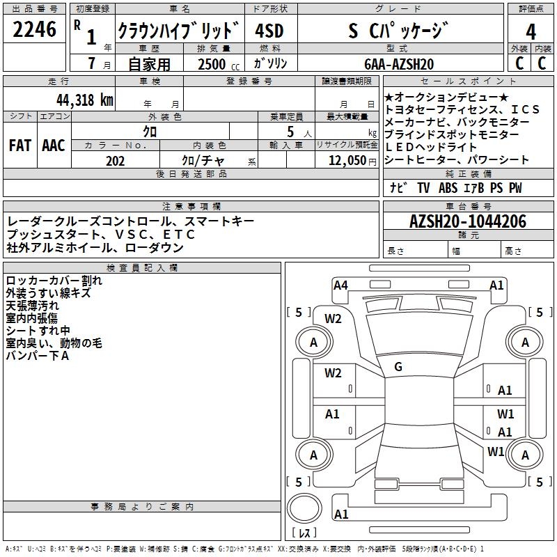 TOYOTA CROWN HYBRID S C PACKAGE - лот 2246