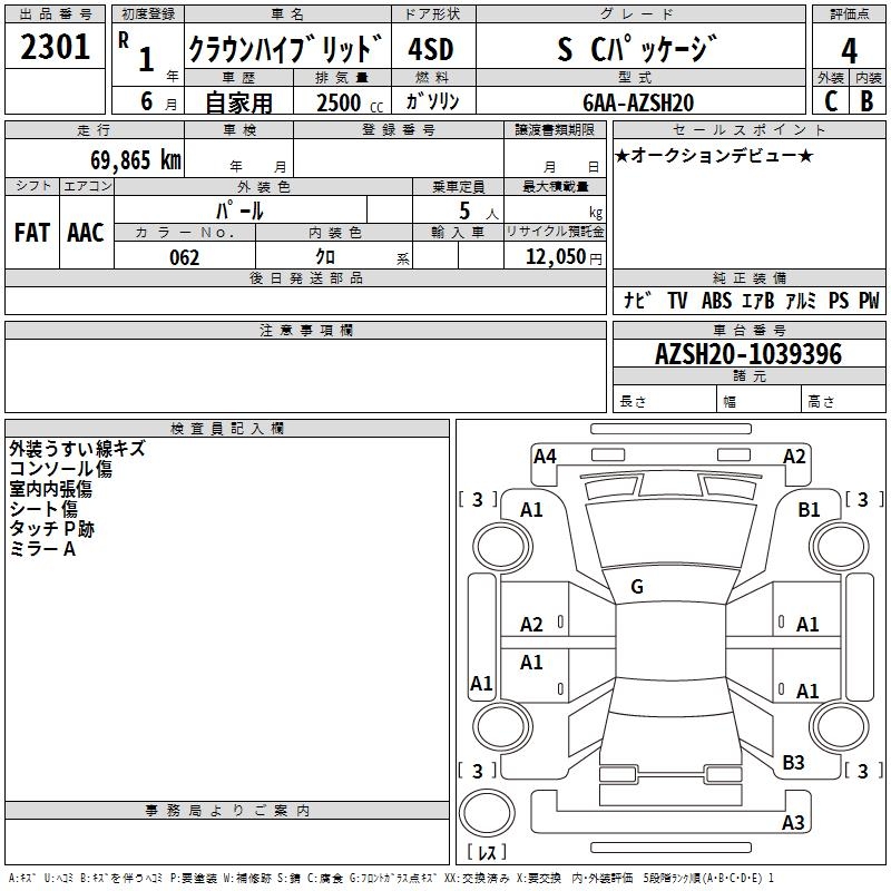 TOYOTA CROWN HYBRID S C PACKAGE - лот 2301