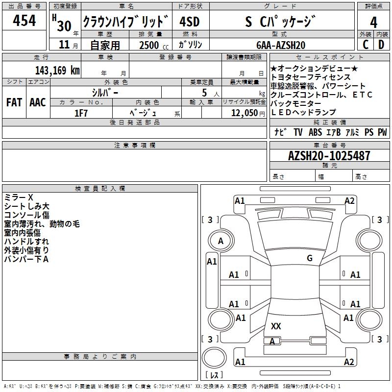 TOYOTA CROWN HYBRID S C PACKAGE - лот 454