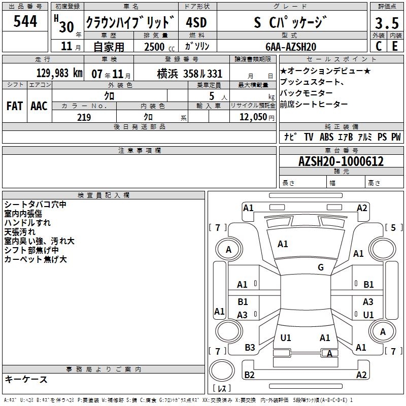 TOYOTA CROWN HYBRID S C PACKAGE - лот 544