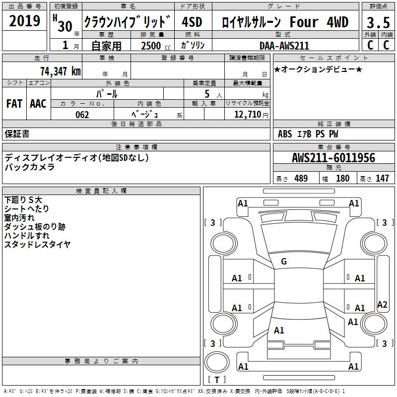 TOYOTA CROWN HYBRID ROYAL SALOON FOUR 4WD - лот 2019