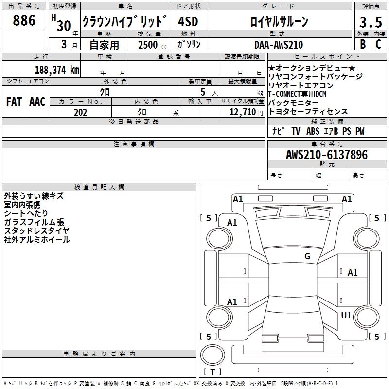 TOYOTA CROWN HYBRID ROYAL SALOON - лот 886