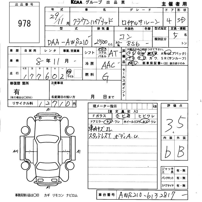 TOYOTA CROWN HYBRID ROYAL SALOON - лот 978