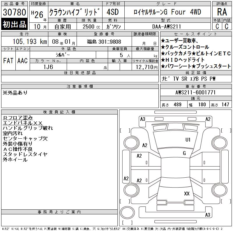TOYOTA CROWN HYBRID ROYAL SALOON G FOUR 4WD - лот 30780