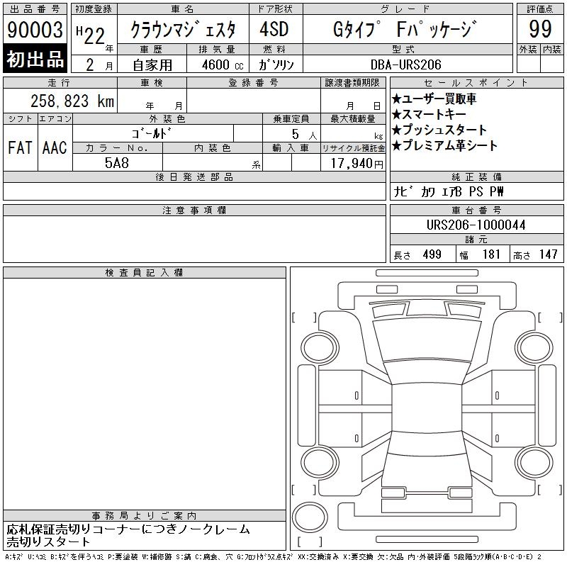 TOYOTA CROWN MAJESTA G TYPE F PACKAGE - лот 90003
