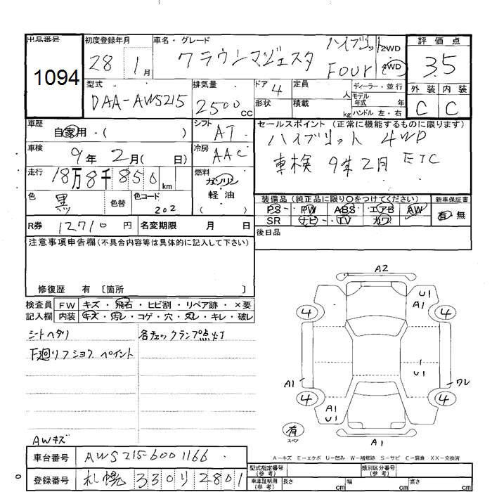 TOYOTA CROWN MAJESTA HYBRID FOUR - лот 1094