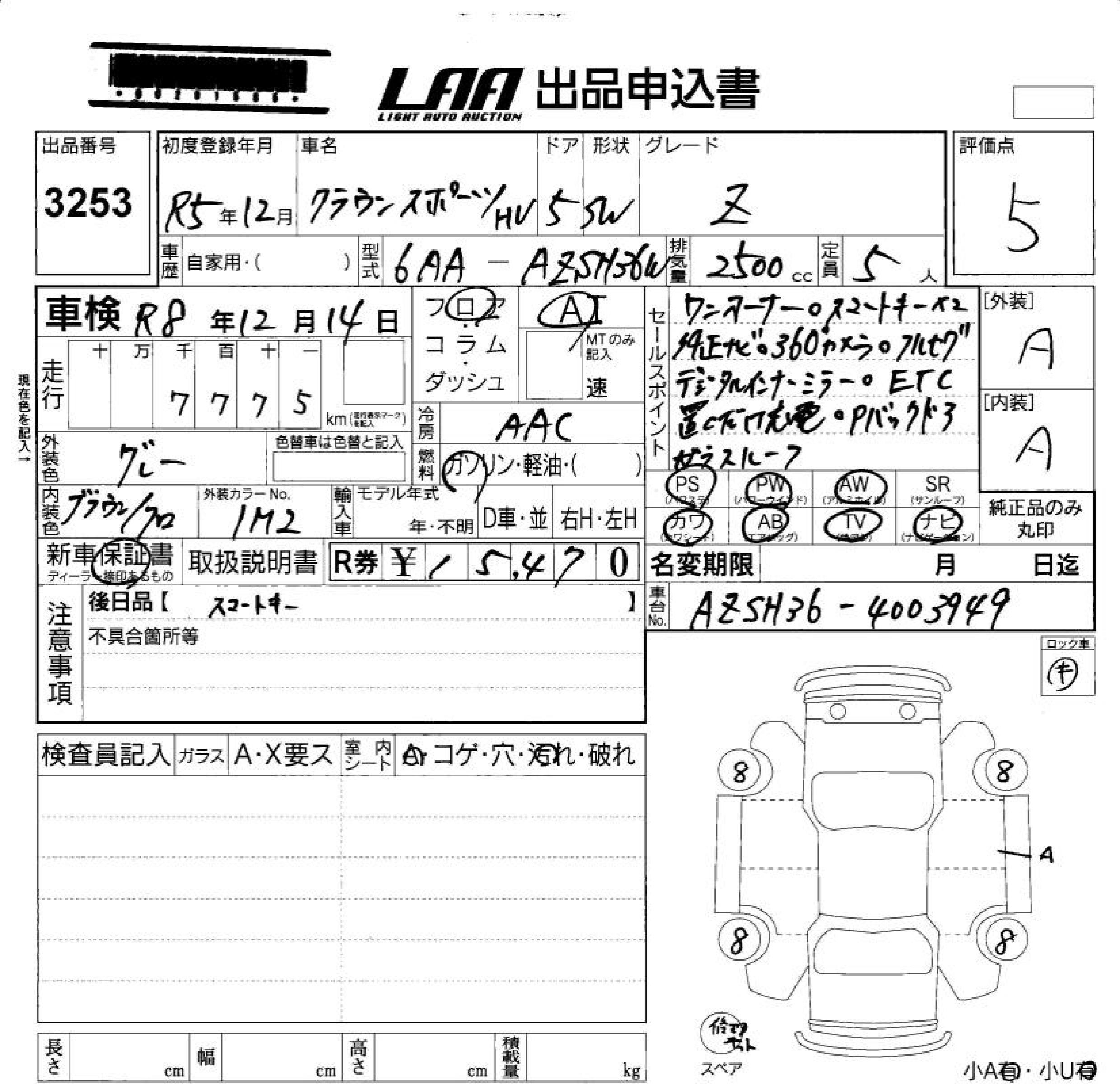 TOYOTA CROWN SPORT Z - лот 3253