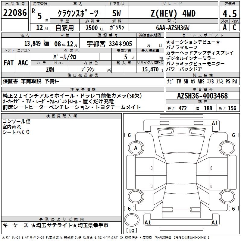 TOYOTA CROWN SPORT Z(HEV) 4WD - лот 22086