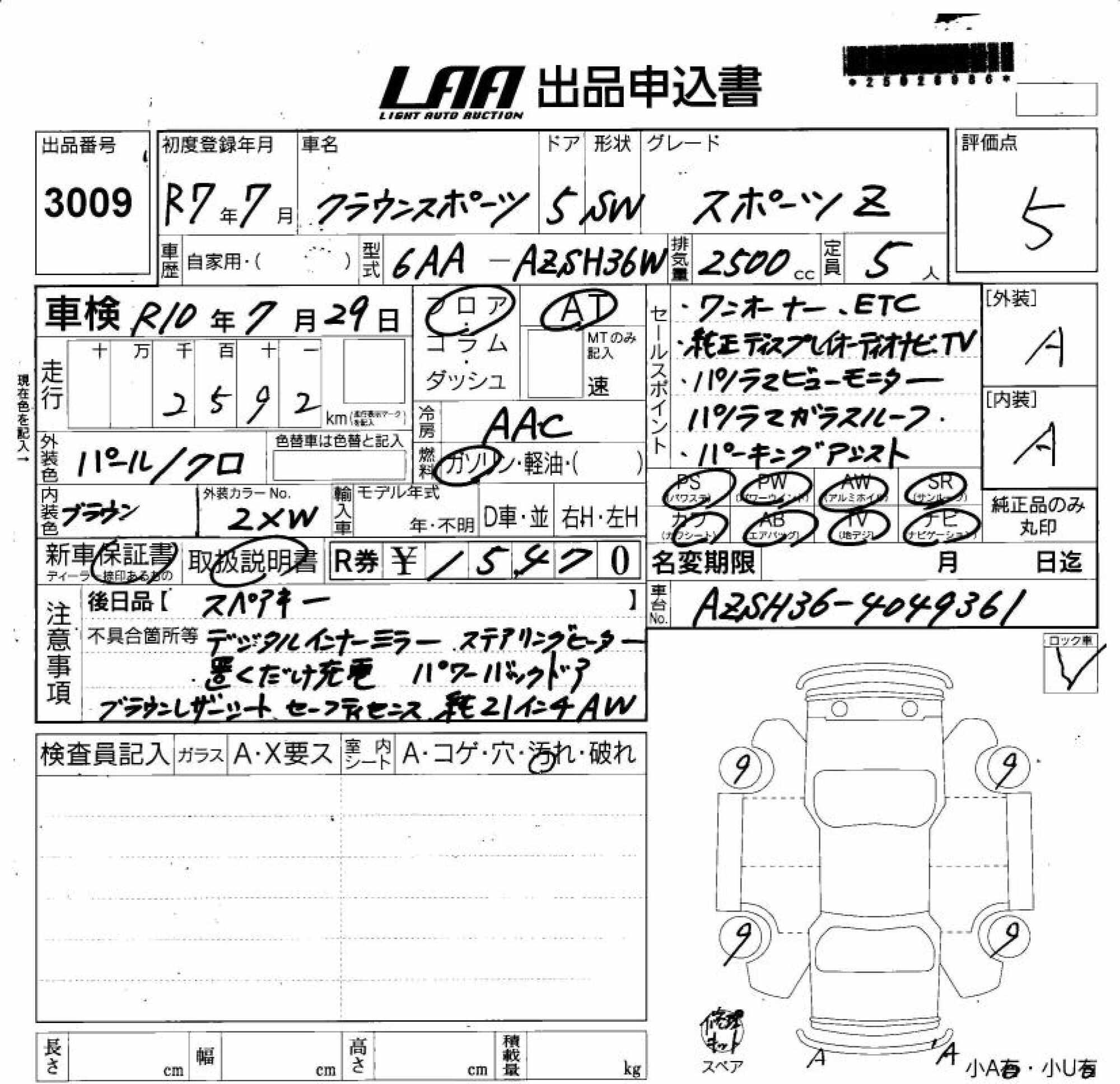 TOYOTA CROWN SPORT - лот 3009