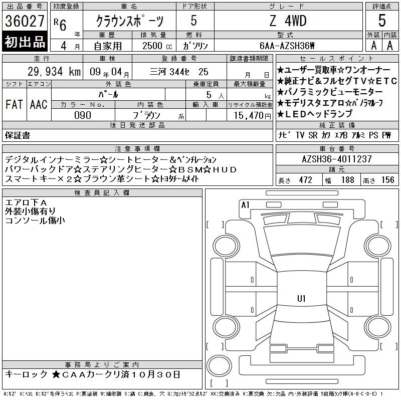 TOYOTA CROWN SPORT - лот 36027