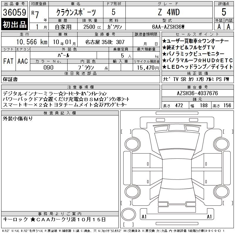 TOYOTA CROWN SPORT - лот 36059