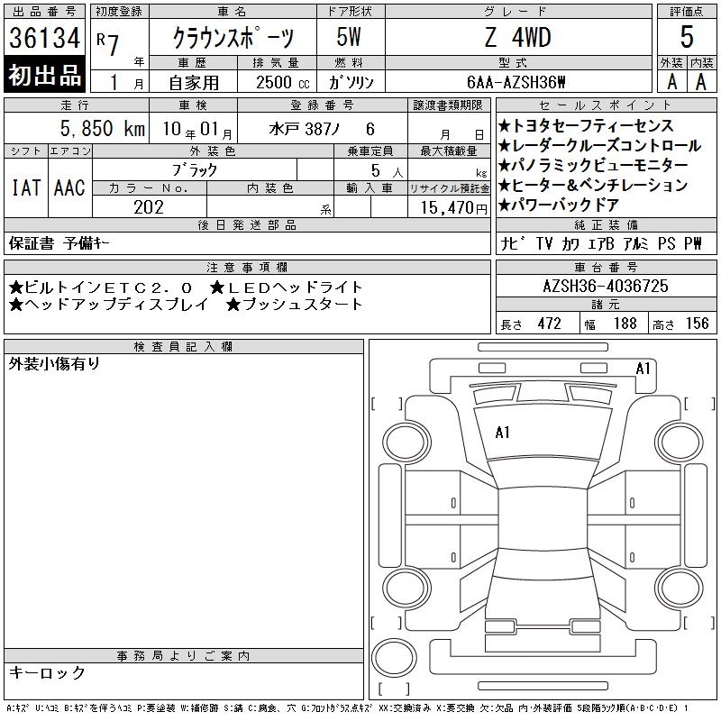 TOYOTA CROWN SPORT - лот 36134