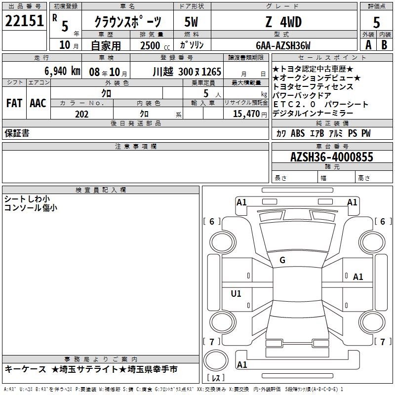 TOYOTA CROWN SPORT - лот 22151