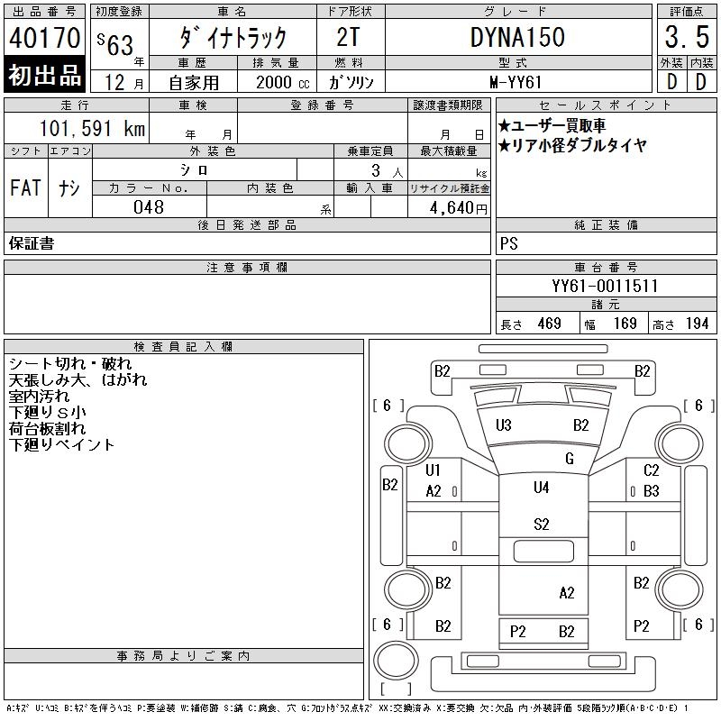 TOYOTA DYNA TRUCK DYNA150 - лот 40170