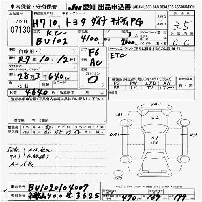 TOYOTA DYNA TRUCK COMMON BODY PG 2T - лот 7130