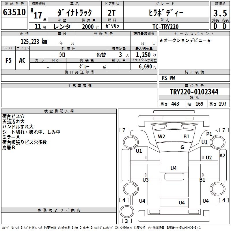 TOYOTA DYNA TRUCK COMMON BODY - лот 63510