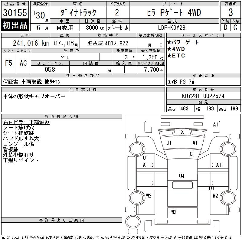 TOYOTA DYNA TRUCK COMMON P GATE 4WD - лот 30155