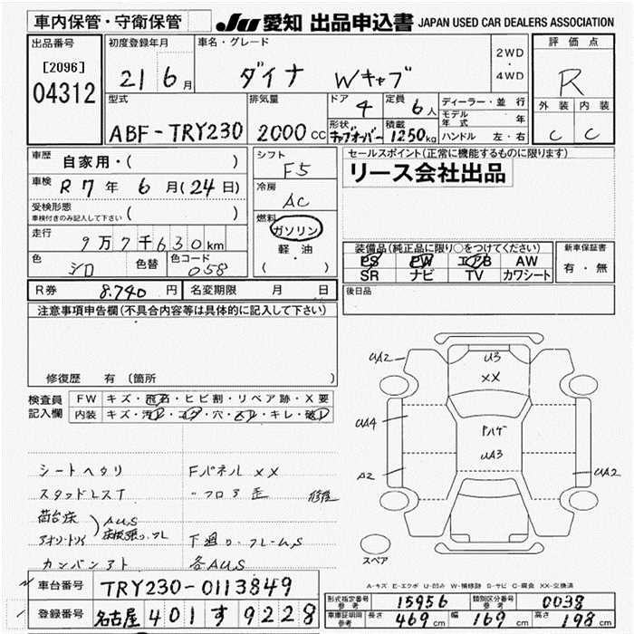TOYOTA DYNA TRUCK W CAB 1.25T - лот 4312