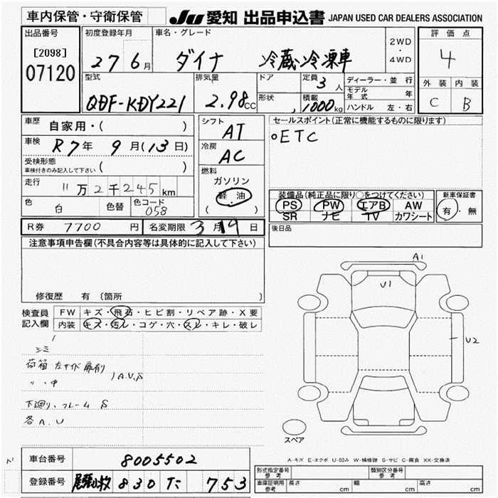 TOYOTA DYNA TRUCK CHILLING REFRIGERATOR 1T - лот 7120