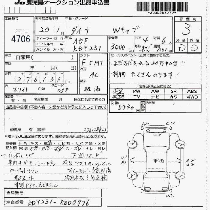 TOYOTA DYNA W CAB - лот 4706