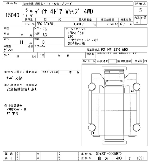 TOYOTA DYNA W CAB - лот 15040
