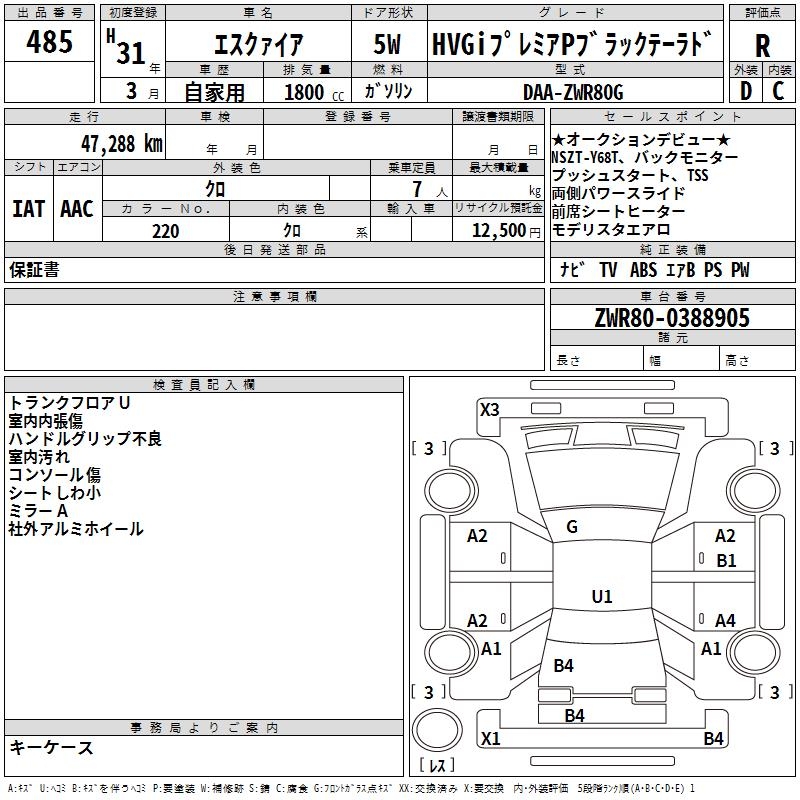 TOYOTA ESQUIRE HVGI PREMIUM P BLACK TE-LADO - лот 485