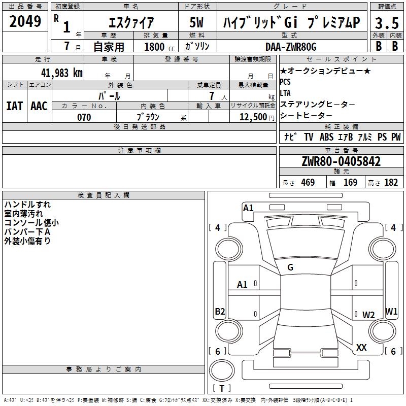TOYOTA ESQUIRE HYBRID GI PREMIUM P - лот 2049