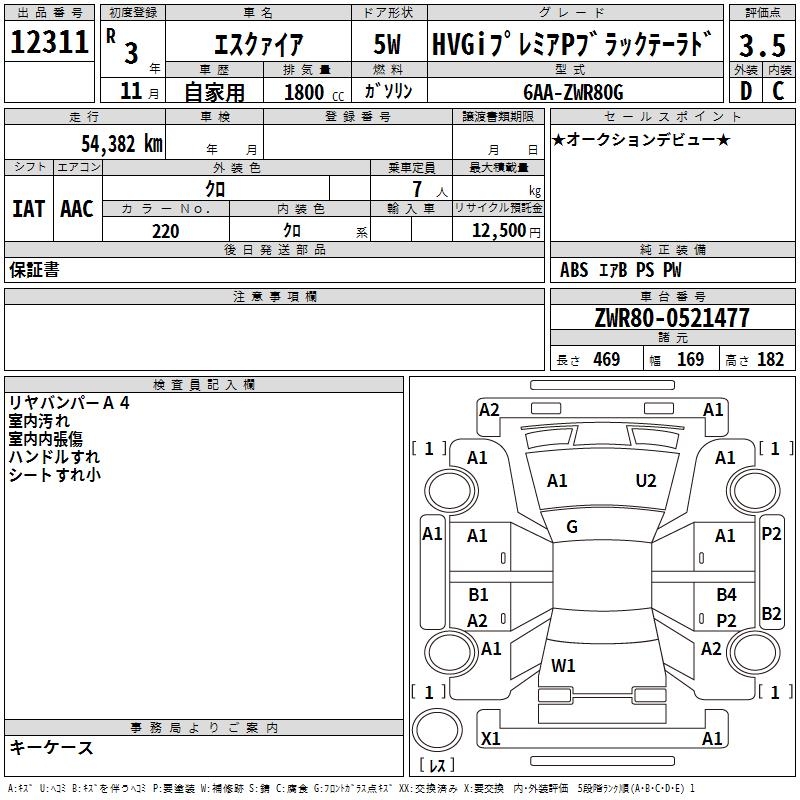 TOYOTA ESQUIRE HVGI PREMIUM P BLACK TE-LADO - лот 12311