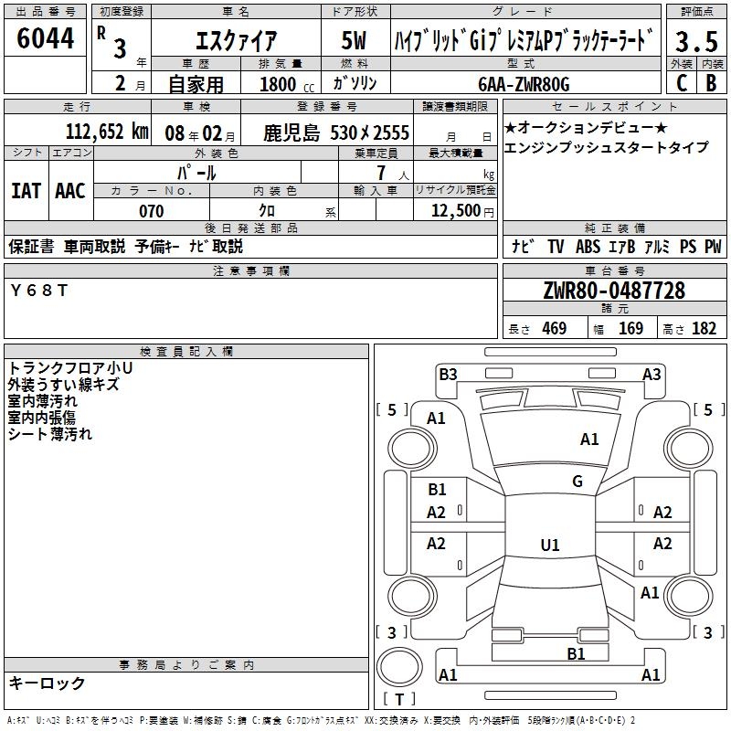 TOYOTA ESQUIRE HVGI PREMIUM P BLACK TE-LADO - лот 6044